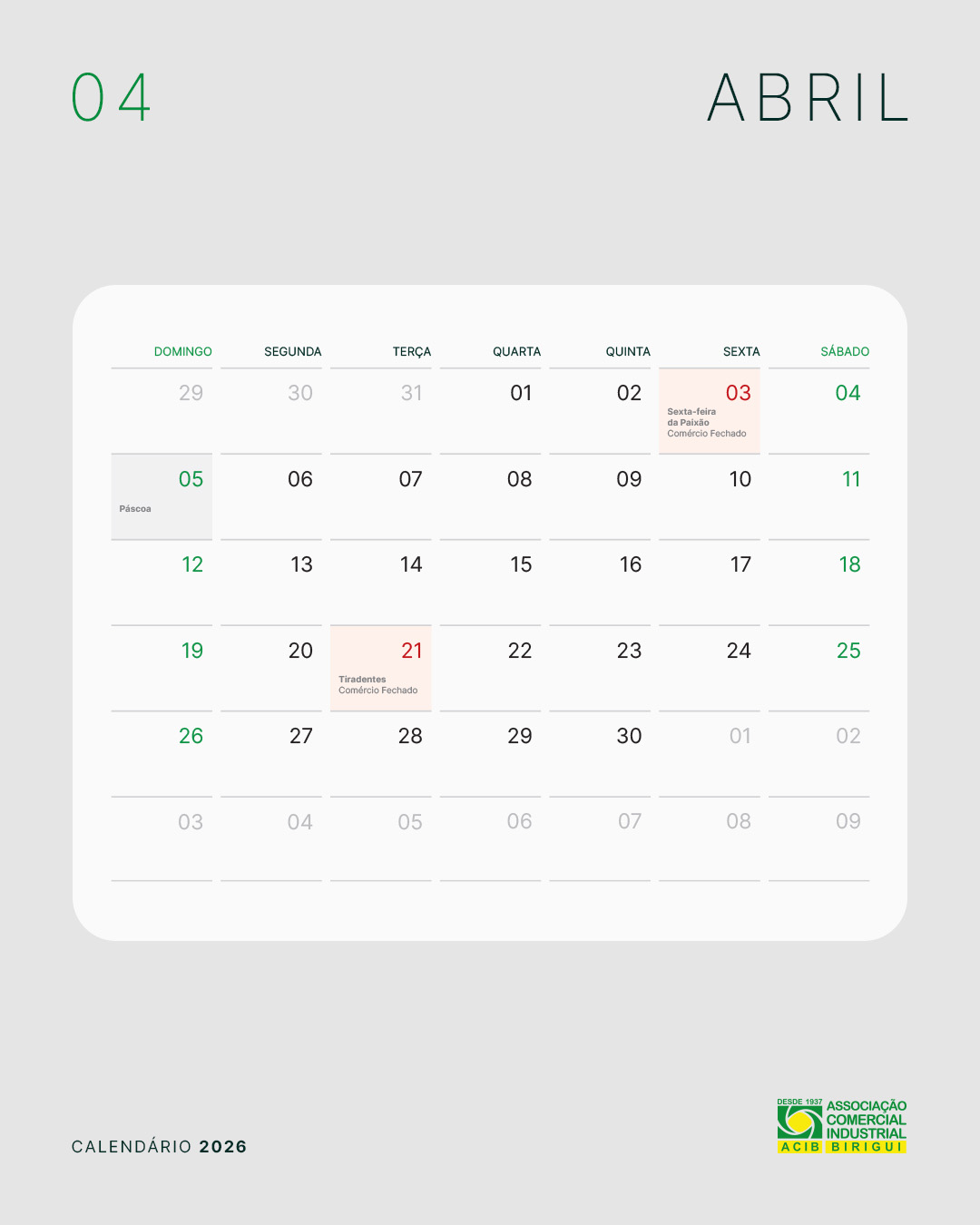 Calendário 2026